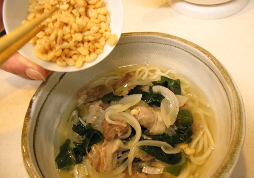 青ねぎはもちろんおいしゅうございますが、天かすはのせると食感や甘みが
