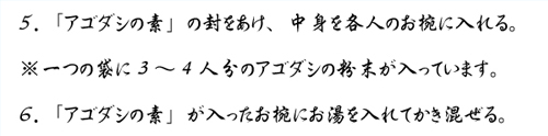 また、本格的アゴダシのつゆの場合は工程の中での「味付け」の段階で