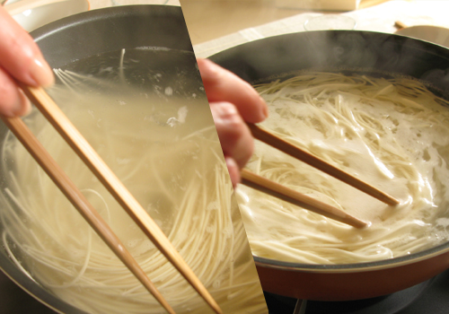 12、お鍋で茹でている五島うどんが