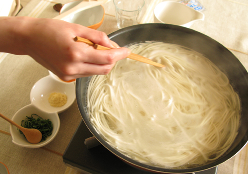 よくお見かけされますが、入れた直後にうどんがくっつかないように