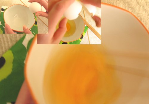 ※お椀に卵を溶き入れて、いただきます。