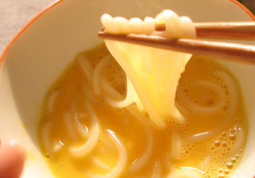 溶いて、そこにうどんをつけて食べると・・・これがとろけるほどまろやかな味!
